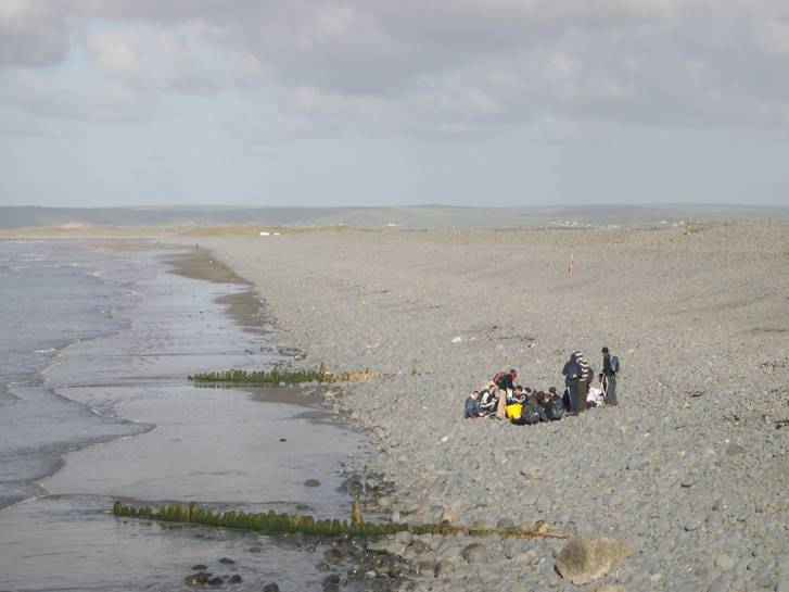 2.00pm: Time for the beach investigation – Pebble Ridge, a large depositional landform in the shape of a spit, is perfect for pebble analysis and creating beach profiles. One example of an investigation title we follow looks a little like this: